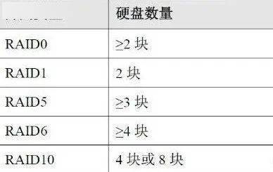 这里面列出了常用阵列类型至少所需硬盘的数量: