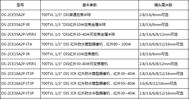 订货型号:DS-2CE55A2P DS-2CE55A2P-IR DS-2CE55A2P-VFIR3 DS-2CE16A2P-ITA DS-2CE15A2P-IR DS-2CE15A2P-VFIR3 DS-2CE16A2P-IT3P DS-2CE16A2P-IT3P DS-2CE56A2P-IT3P