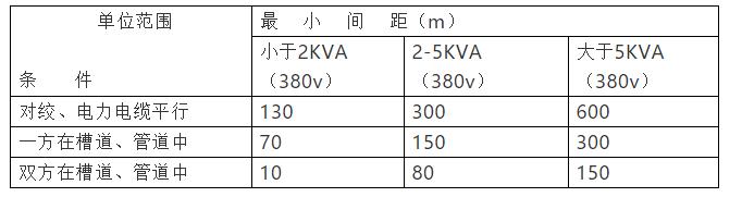表十对绞电缆与电力线最小净距