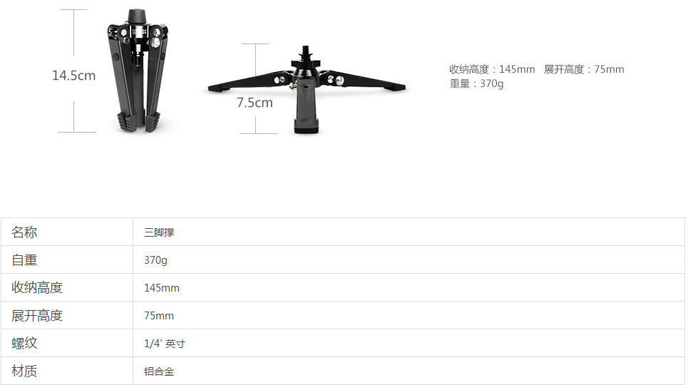 产品参数:收纳高度145mm,展开高度75mm,重量370g