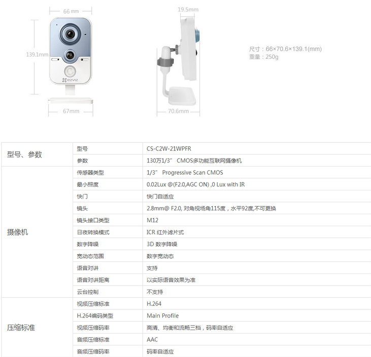 产品名称:C2W多功能互联网摄像机