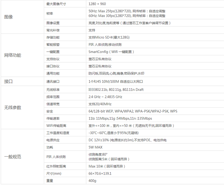 产品参数:1/3” CMOS多功能互联网摄像机