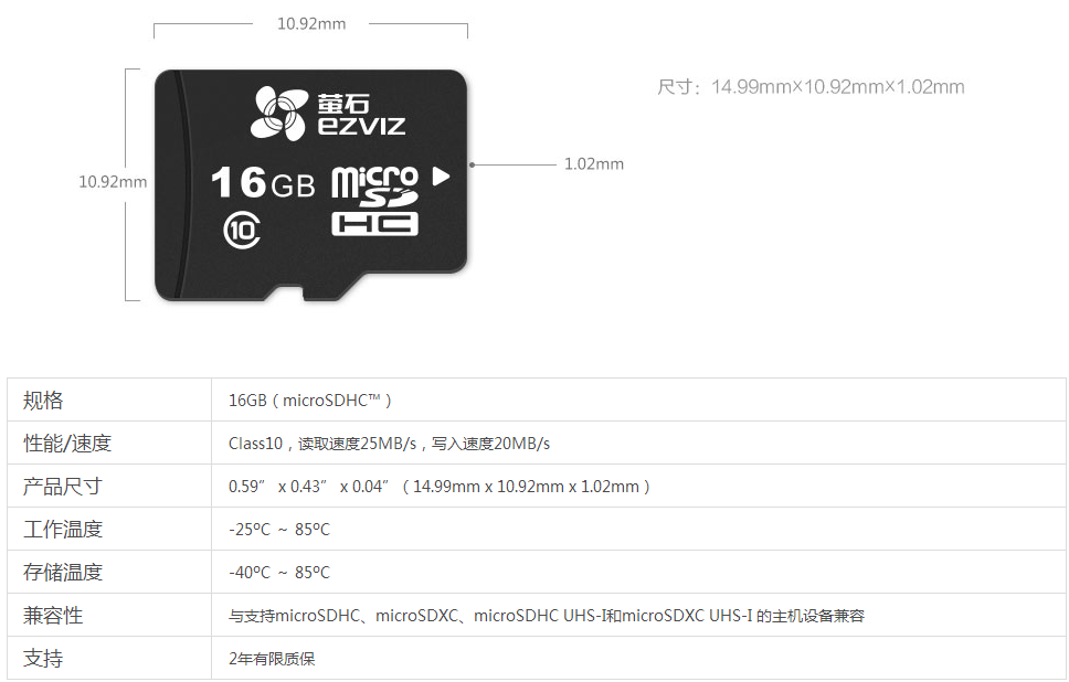 产品参数:16G,Class10,读取速度25MB/s,写入速度20MB/s